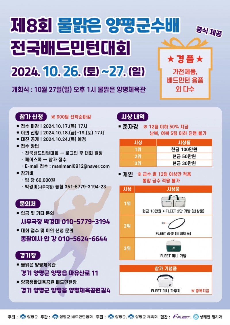 제 8회 물맑은 양평군수배 전국배드민턴 대회