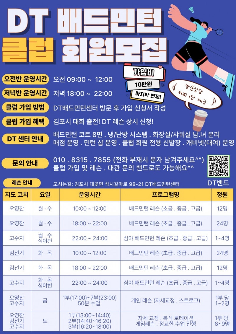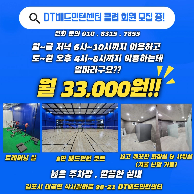 김포시 최대 배드민턴센터 DT배드민턴 센터에서