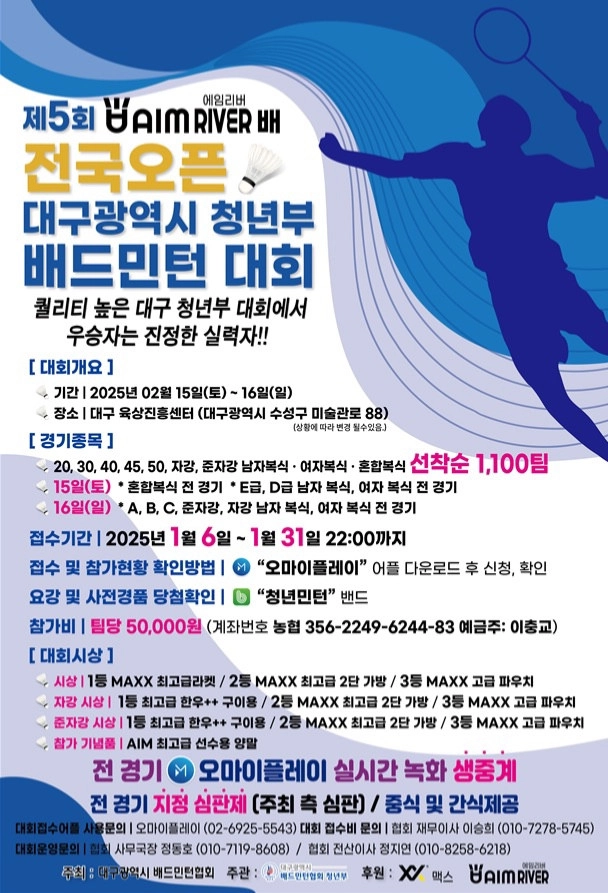 제 5회 에임리버 배 전국 오픈 대구광역시 청년부 배드민턴 대회