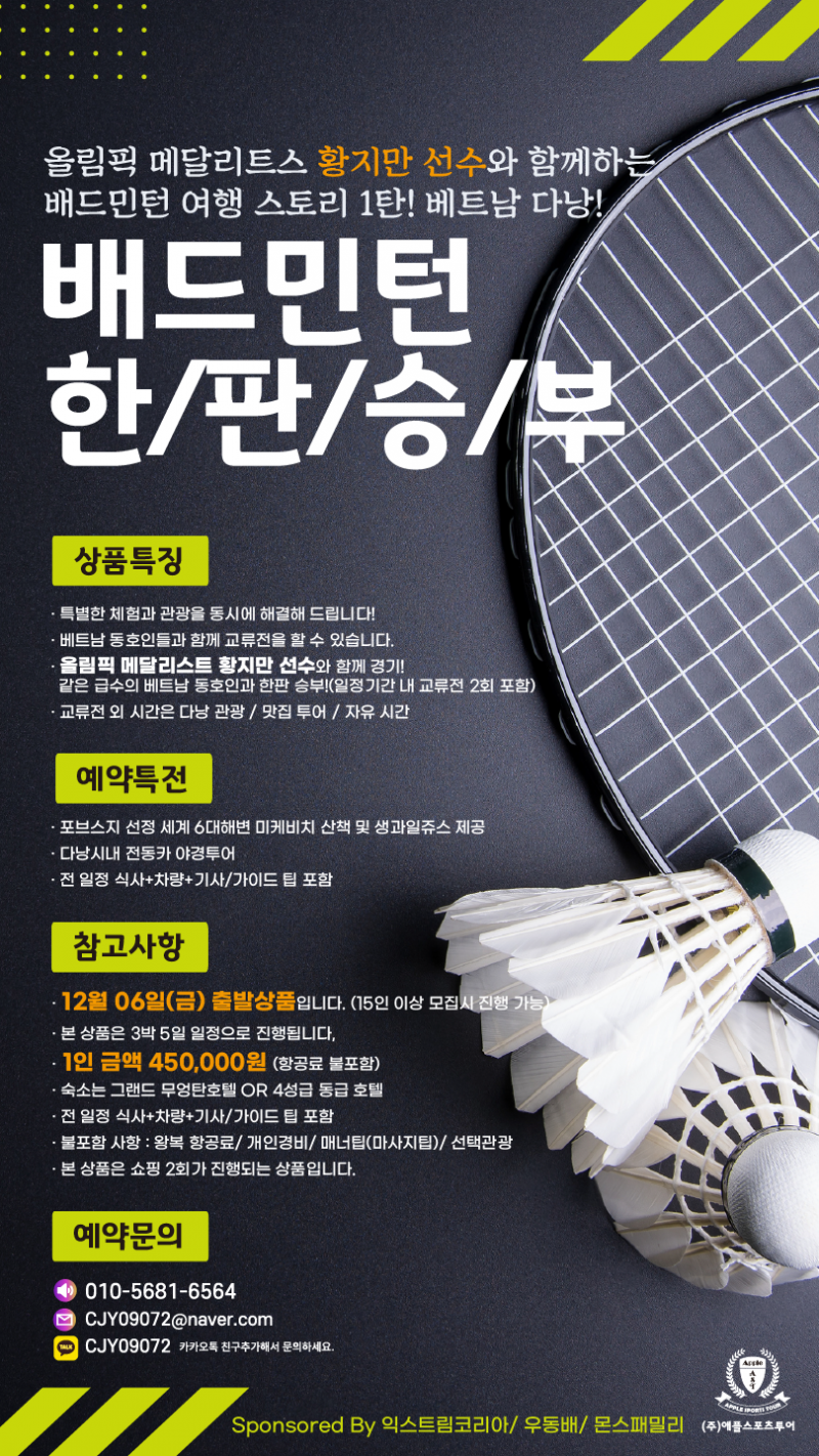 애플스포츠 투어 - 다낭 배드민턴 여행 - 안녕하세요
