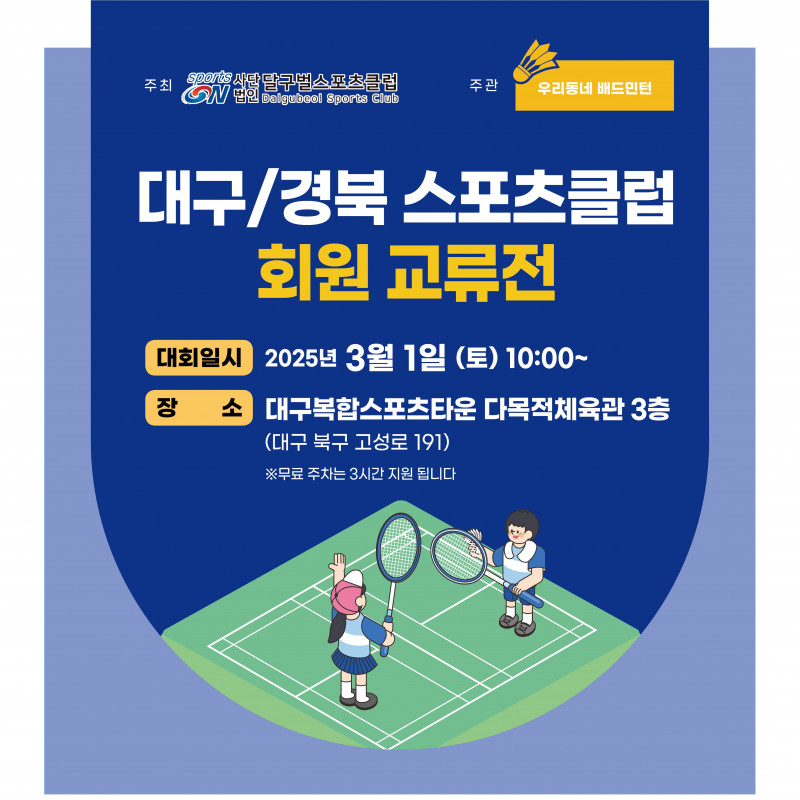 모임 열정 민턴 🔸️청라스포츠클럽 📍대구광역시 중구 대봉로 208-1