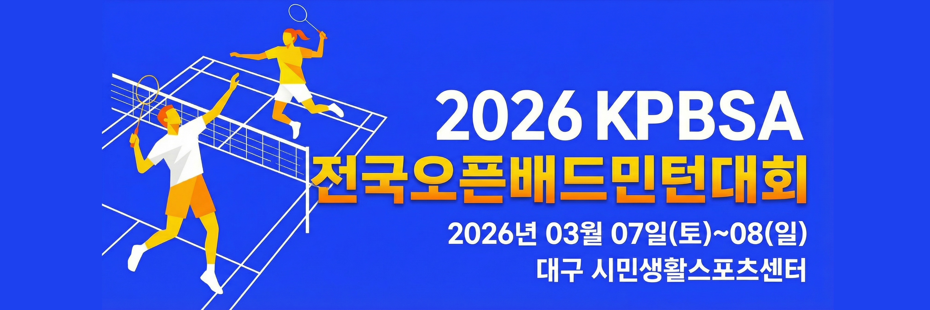2026 KPBSA 전국오픈 배드민턴 대회 2026년 3월 7일~ 8일 대구 시민생활스포츠센터