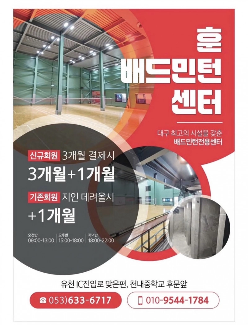 훈 배드민턴 센터 대구 최고 시설의 배드민턴 전용센터! 신규회원 모집합니다. ☆ 신규회원 혜택