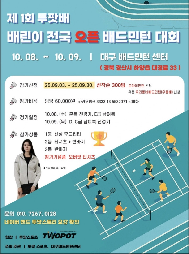 제1회 투팟배 배린이 전국 오픈 배드민턴 대회 10월8일~9일