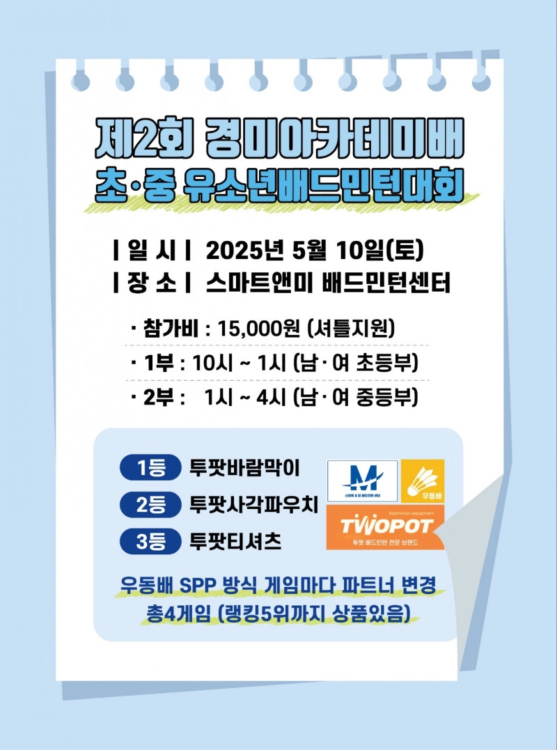 >참가비 : 15,000원 [셔틀콕지원]